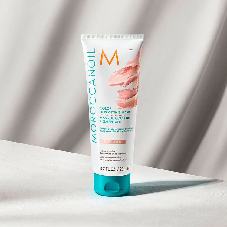 Color Depositing Mask de Moroccanoil diseñada para realzar los tonos, refrescar el color existente o permitir experimentar con tonalidades de moda, mientras le devuelve la salud al cabello. El resultado: un cabello hermoso con color temporal, sin el compromiso del tinte permanente, que se ve y se siente saludable. Contiene ingredientes nutritivos, entre los que se incluyen una mezcla de aminoácidos, aceite de semilla de albaricoque y la reparadora tecnología del ArganID™ para que el cabello se vea y se sienta más saludable.